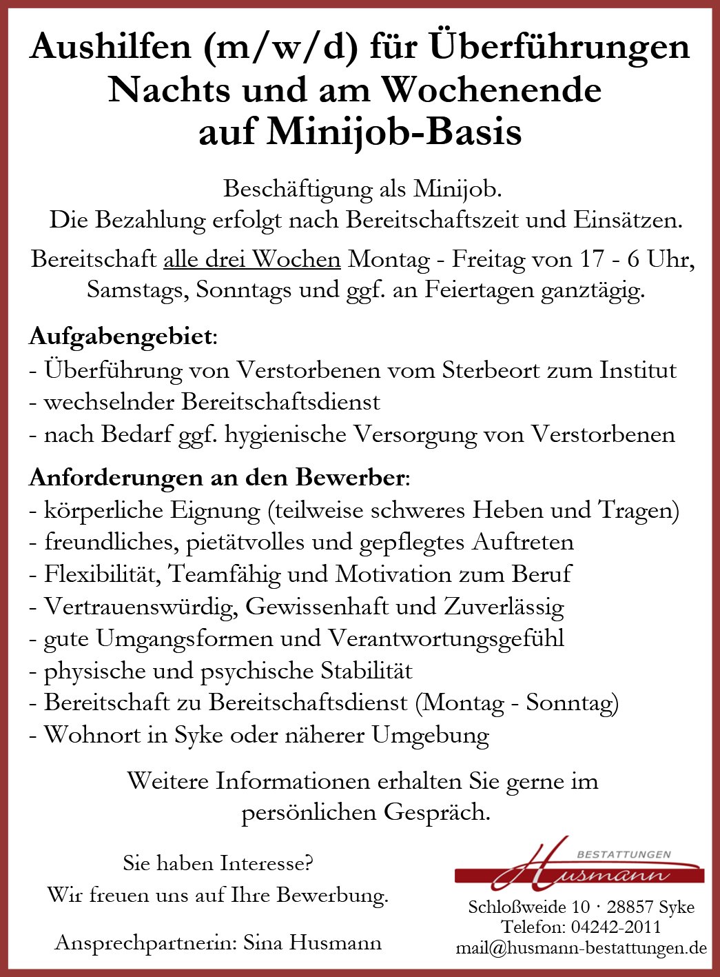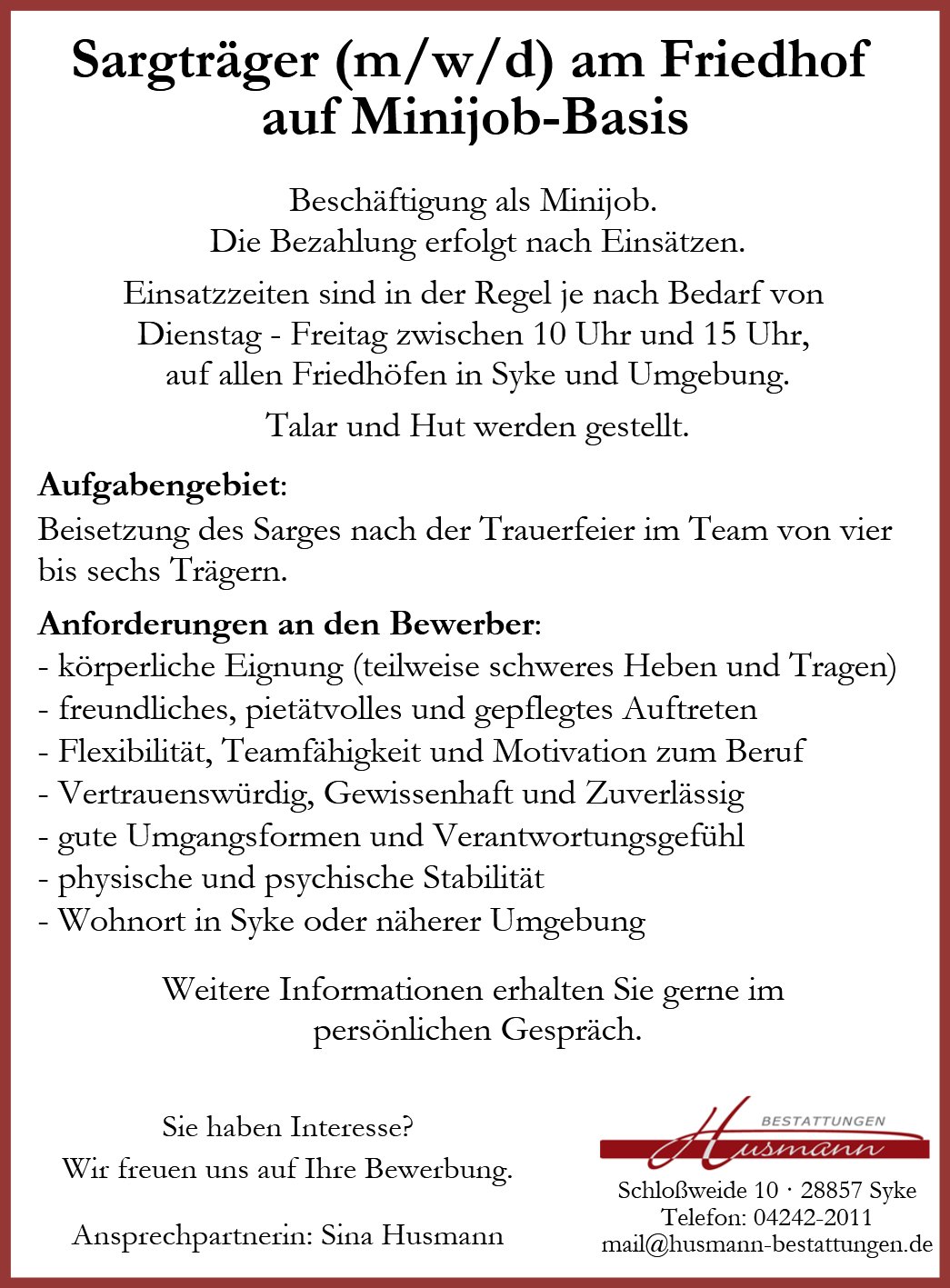 Besonders interessant sind für uns Menschen, die sich bewusst eine Tätigkeit im Bestattungswesen vorstellen können und mindestens 30 Stunden pro Woche arbeiten möchten – auch gerne als Quereinsteiger.